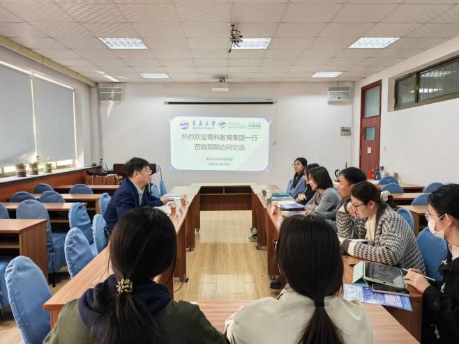 新闻网讯 为构建校企资源共享平台,助力学生高质量就业,近日,外语学院与青科教育集团在博文楼312开展促就业合作交流。青科教育集团人力资源副总裁高晨旭、人力资源部主任曹钰婷,外语学院党委副书记于苗以及师生代表参加会议。