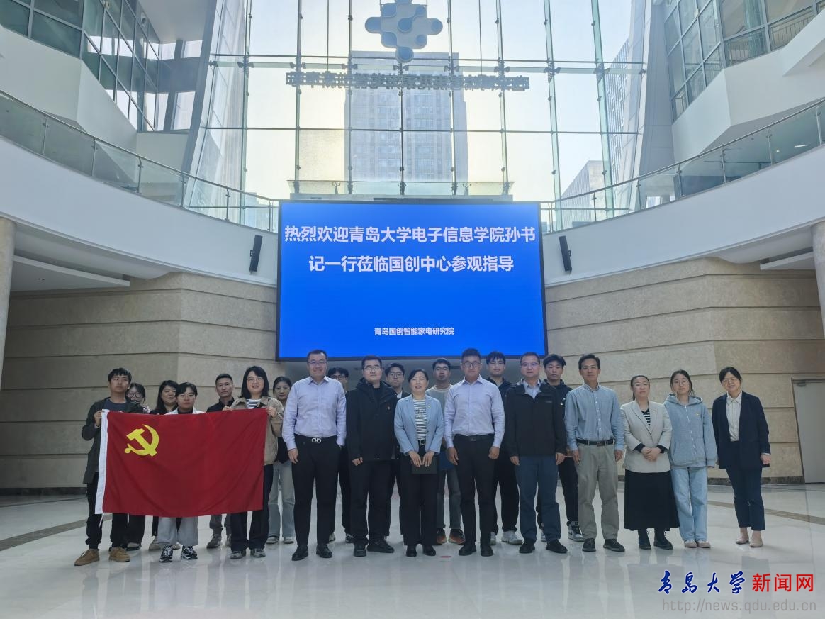 新闻网讯 4月25日,电子信息学院微纳电子学系教工党支部前往青岛国创智能家电研究院(以下简称国创中心)组织开展了“党旗引领创新路,智汇家电中国芯”主题党日活动。电子信息学院党委书记孙丽娜、副院长姚钊、微纳电子学系党支部书记曹明惠、教师党员和学生党员代表参加了此次活动。