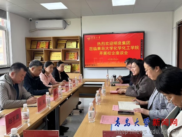 新闻网讯 4月24日上午,明泉集团董事局办公室副主任吴国亮一行到化学化工学院访问交流,在博观楼509会议室举行校企合作座谈交流会。化学化工学院院长毕赛、党委副书记李咏沙以及师生代表参加了会议。双方就人才培养、科研合作、就业对接等议题展开深入交流,共绘校企协同发展蓝图。