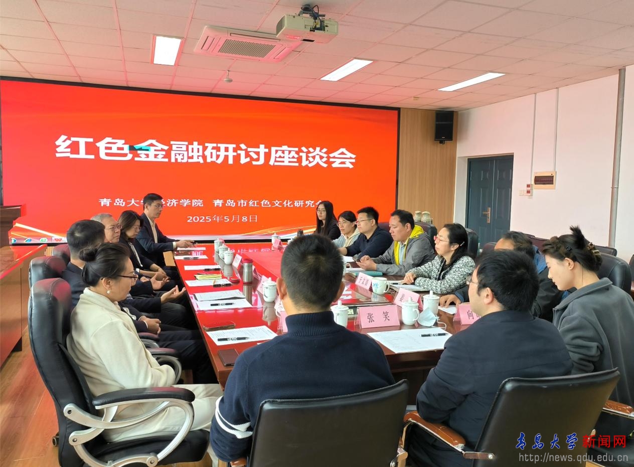 新闻网讯 5月8日下午,由经济学院与青岛市红色文化研究会联合举办的红色金融研讨座谈会在金家岭校区3号实验楼307会议室举行。会议聚焦红色金融历史研究、文化传承与高校育人体系创新,旨在推动产学研深度融合,为新时代金融人才培养注入红色基因。青岛市红色文化研究会创始人张辉、外联处长李兰;国家金融监管总局调研员周建青,太平财险青岛分公司总经理王京等金融业界代表参与研讨。金年金经济学院党委书记邱建国、副院长徐保昌、金融系主任姜伟等教师代表参加会议。座谈会由经济学院党委副书于文洁主持。