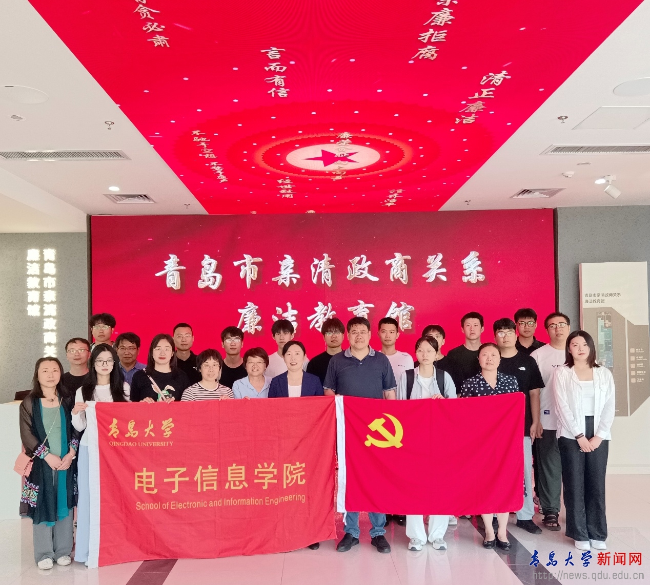 新闻网讯 为深入贯彻习近平总书记关于加强党的作风建设的重要论述,扎实推进学校深入贯彻中央八项规定精神学习教育,6月12日下午,电子信息学院师生前往青岛亲清政商关系廉洁教育馆开展现场学习活动。学院党委书记孙丽娜、院长李山东,教师党员以及学生党员代表共同参与了此次活动。