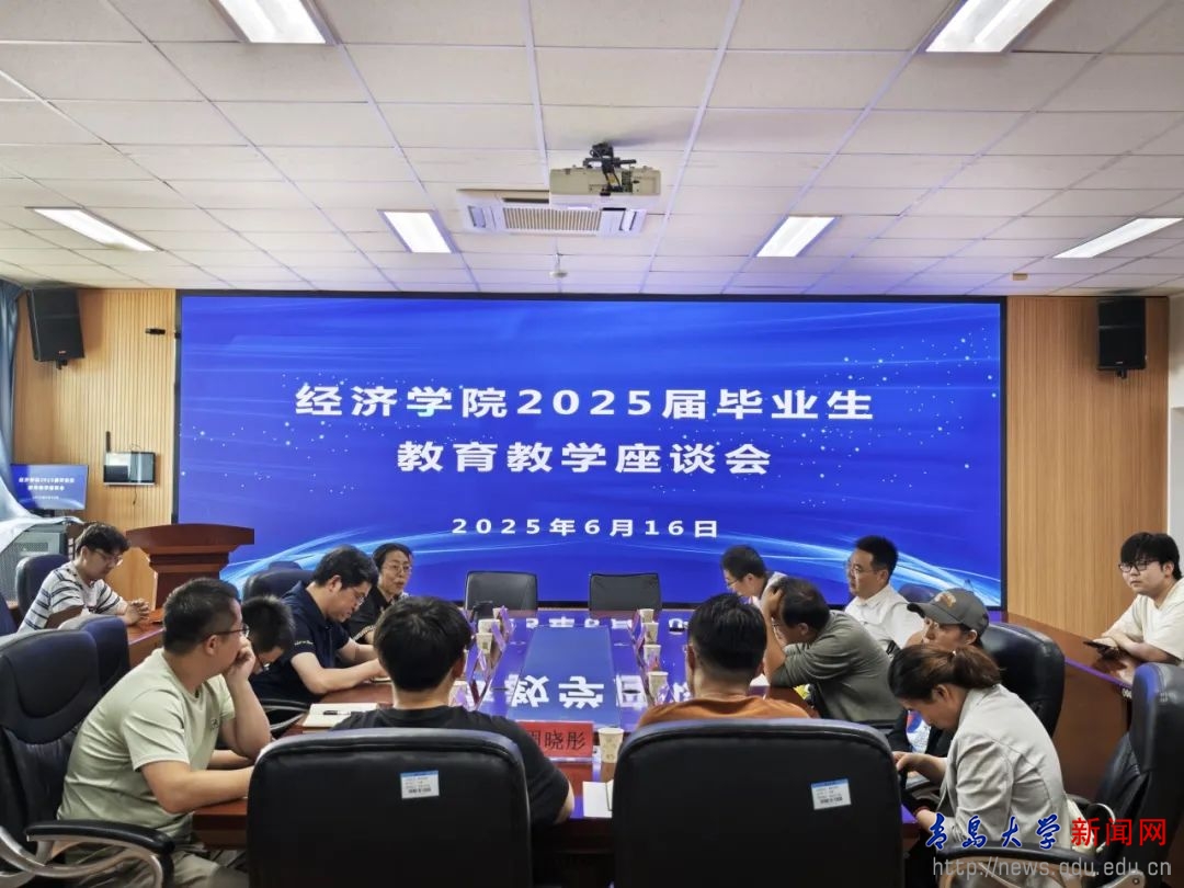 新闻网讯 6月16日下午,经济学院2025届毕业生座谈会在金家岭校区3号实验楼307会议室召开。经济学院院长吕学梁、副院长徐保昌、各系主任、学工办主任、辅导员、教师代表以及学院本科生毕业生代表参加会议。院党委副书记于文洁主持座谈会。