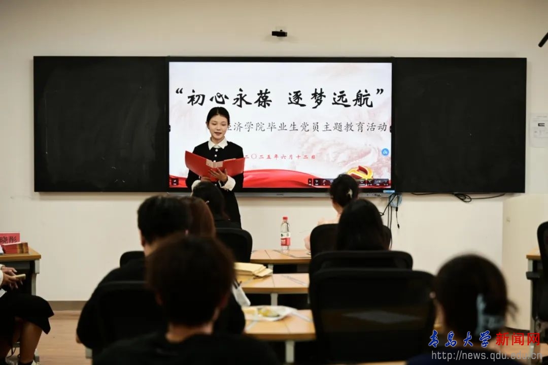经济学院党委副书记于文洁作总结讲话,向圆满顺利完成学业的毕业生党员表示热烈祝贺,强调党员身份既是荣誉更是责任。她殷切希望同学们要永远牢记党员身份,坚守入党初心,以党员标准严格要求自己,在工作、生活中勇于担当、积极作为,为党和国家事业奉献力量。