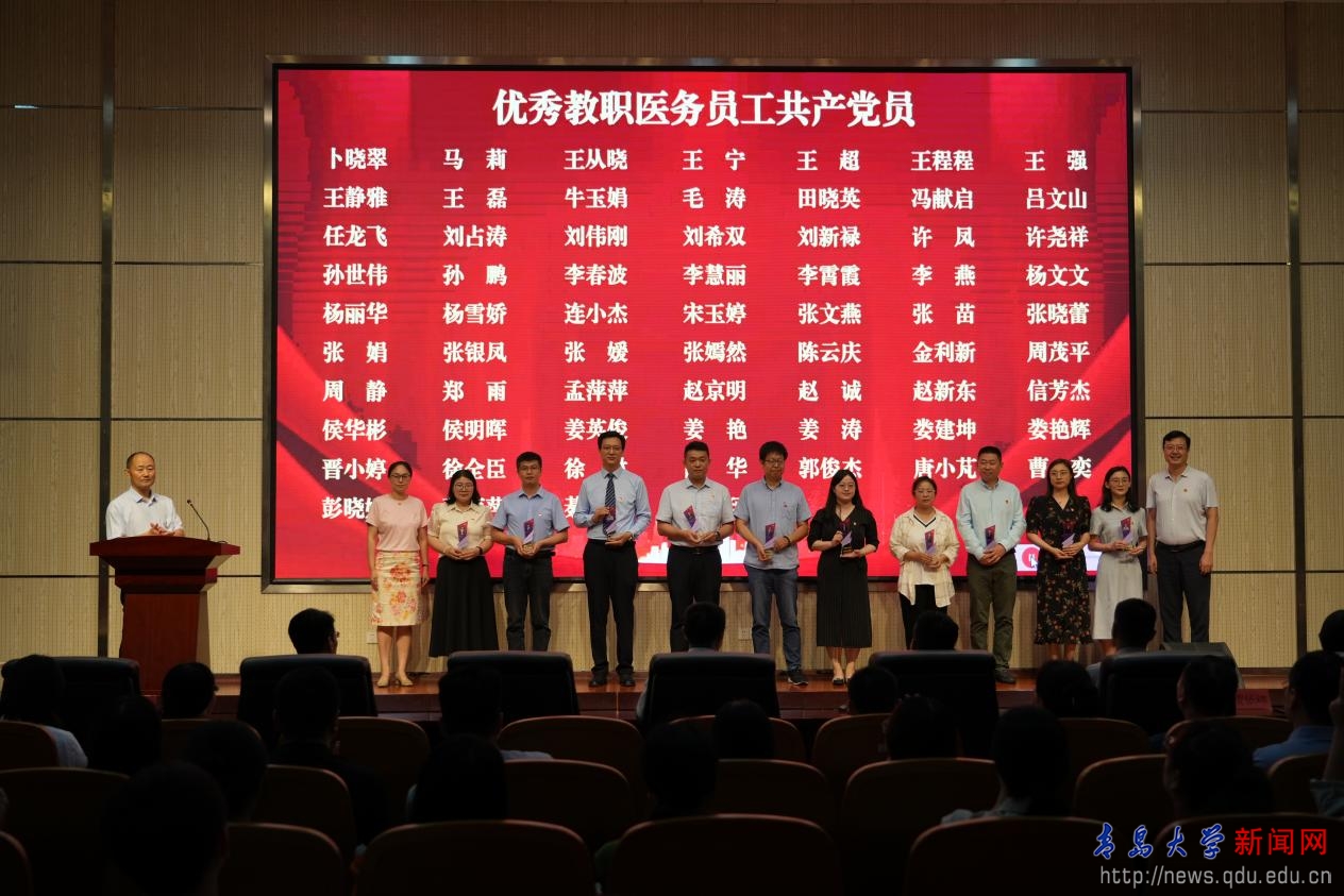 青岛医学院副院长王建勋宣读《关于表彰先进基层党组织、优秀共产党员、优秀党务工作者的决定》,基础医学院教工第二支部等13个基层党组织被授予“先进基层党组织”称号,卜晓翠等84名同志被授予“优秀共产党员”称号,张丽等10名同志被授予“优秀党务工作者”称号。