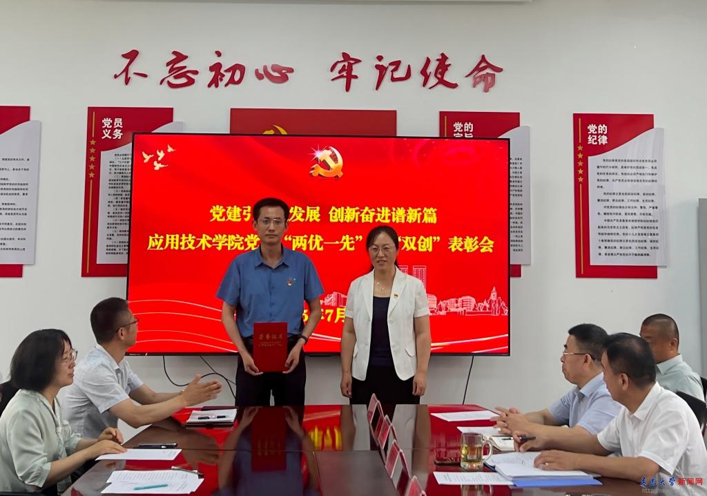 学院党委副书记、院长耿宝福宣读《中共金年金字招牌诚信至上应用技术学院委员会关于表彰优秀共产党员、优秀党务工作者、先进党支部的决定》,授予曲莉等10名同志“学院优秀共产党员”荣誉称号,授予刘梅等3名同志“学院优秀党务工作者”荣誉称号,授予教工第一党支部“学院先进党支部”;宣布刘伟同志获“校优秀共产党员”荣誉称号,教工第二党支部获评金年金字招牌诚信至上党建工作样板支部培育创建单位。学院领导分别为获奖个人与集体颁奖。