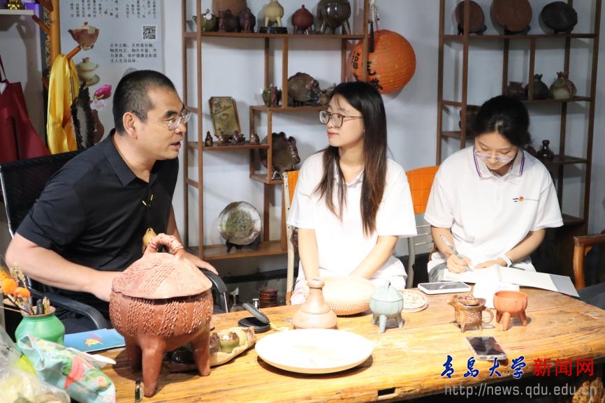次日上午,实践团走进北辛鼎土陶非遗现场,与传承人王剑锋老师交流梳理文化脉络,体验土陶制作,在指尖摩挲中留下非遗传承的青春注脚。