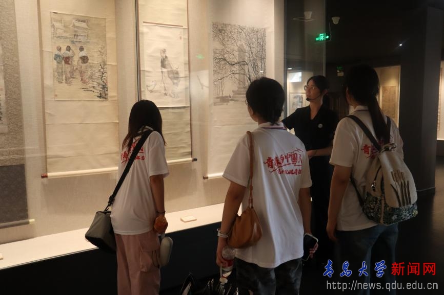 7月16日实践团再入六馆矩阵,在滕州市博物馆内感受滕侯鼎、不其簋和人面纹玉饰三大镇馆之宝的历史底蕴,到墨砚馆体会墨子砚蕴含的“兼爱”“非攻”精神,汉画像石馆里牛耕图、冶铁图刻绘汉代百态,于王学仲艺术馆中领略艺术大家作品的独特视角与文化内涵。