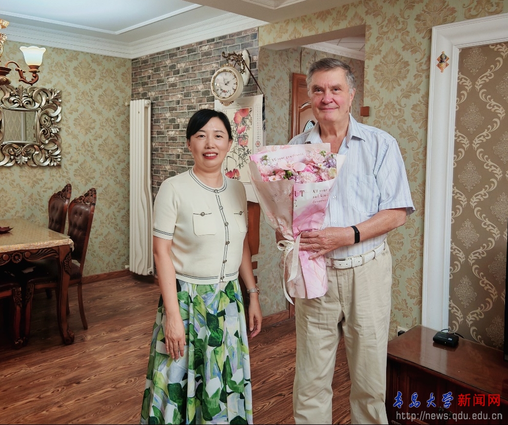 慰问现场氛围温馨融洽。孙丽娜书记向莱昂尼德·切尔诺高尔院士献上鲜花,关切询问他近期的工作进展与生活情况。她表示,莱昂尼德·切尔诺高尔院士作为国际知名专家,不仅为电子信息学院带来了前沿的科研理念与技术方法,还在学科建设、团队建设等方面倾囊相授,助力学院培养了一批具备国际视野的专业人才,其严谨的治学态度与敬业精神深受师生敬佩。