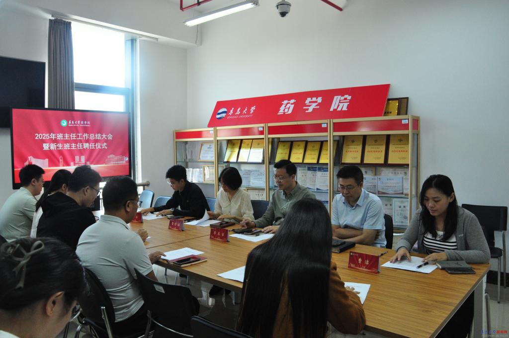 新闻网讯 9月18日,药学院召开2025年班主任工作总结大会暨新生班主任聘任仪式。学院党委书记李在宝、院长孙勇、党委副书记雷舒涵、副院长曹洁、辅导员杨浩和班主任代表参会,会议由辅导员仇启荣主持。