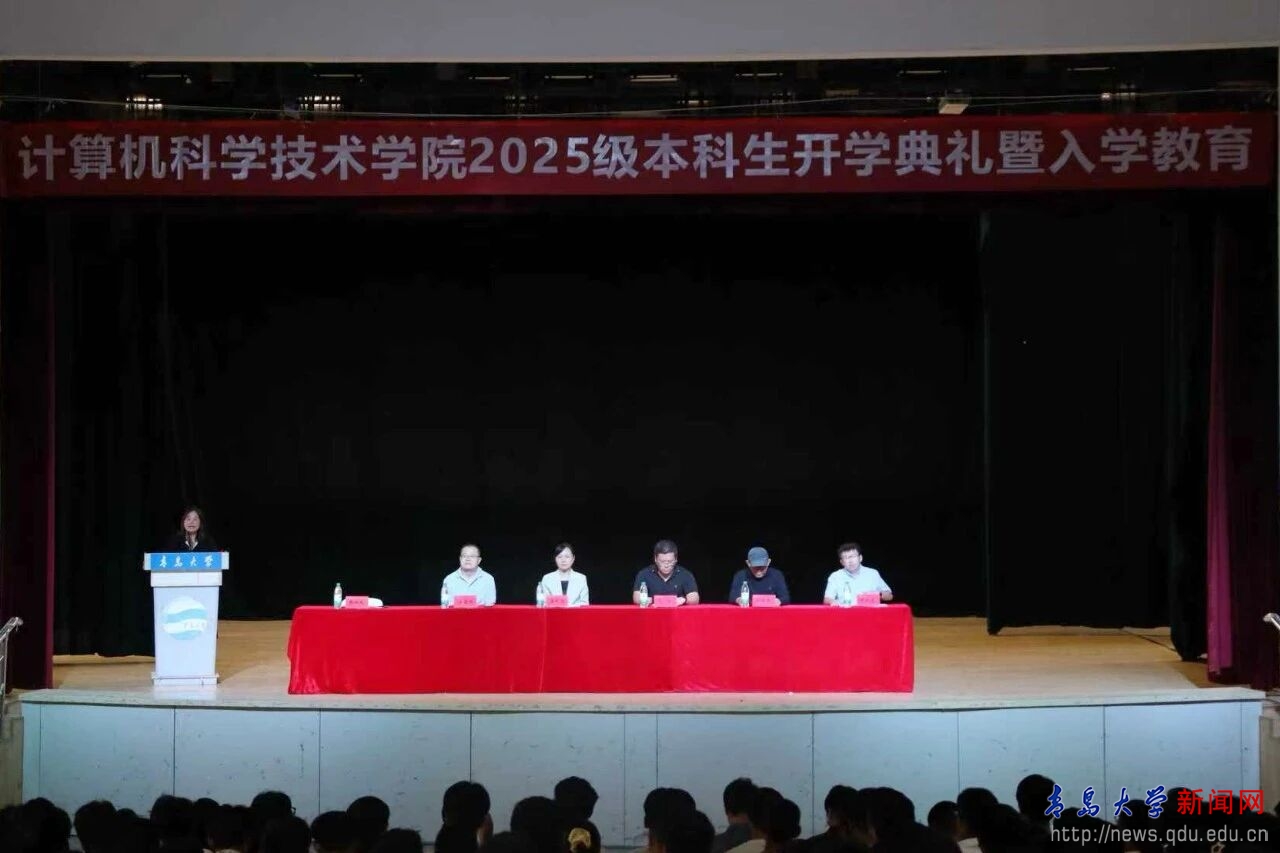 新闻网讯 9月26日下午,金年金字招牌诚信至上计算机科学技术学院2025级本科生开学典礼暨入学教育在金家岭校区东院礼堂隆重举行。学院党委书记潘秋鸿,院长于佳,副院长王国栋、杜祥军、苏晓泉出席典礼。各系(中心)负责人、职能部门教师、各级辅导员以及2025级409名本科新生共同参加了此次典礼活动。典礼由学院党委副书记彭双凤主持。
