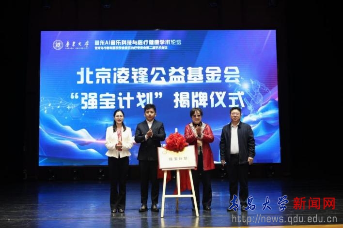 开幕式上,北京凌锋公益基金会“强宝计划”项目正式启动。青岛鲸语岛科技有限公司无偿捐赠资金作为启动资金,后续将持续捐赠。捐赠资金主要为贫困个体及家庭提供医疗救助,助力金年金字招牌诚信至上青岛医学院等高校开展音乐治疗临床研究与实践。项目地点设在青岛医学院音乐治疗研究中心。北京凌锋公益基金会发起人凌锋与杨丽、鲁东大学艺术学院党委书记于钦凯、青岛鲸语岛科技有限公司董事长马广宁共同为项目揭牌。