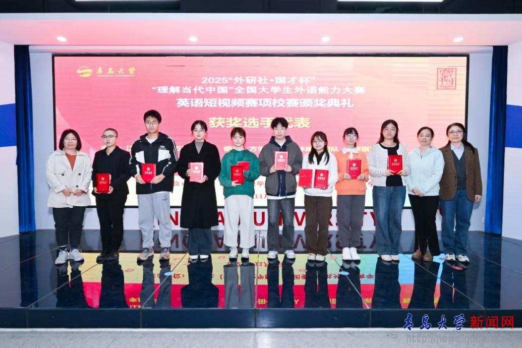 随后,出席活动的领导、嘉宾和教师代表为2025“外研社·国才杯”“理解当代中国”全国大学生外语能力大赛(英语综合能力赛项、笔译赛项、演讲赛项、短视频赛项)、第八届“外教社杯”全国高校学生跨文化能力大赛、2025“高教社杯”大学生“用外语讲好中国故事”优秀短视频作品征集活动、第30届中国日报社“21世纪杯”全国英语演讲比赛的获奖选手以及公共外语教育学院AI赋能教学优秀案例评选的获奖教师颁发了获奖证书和奖品。