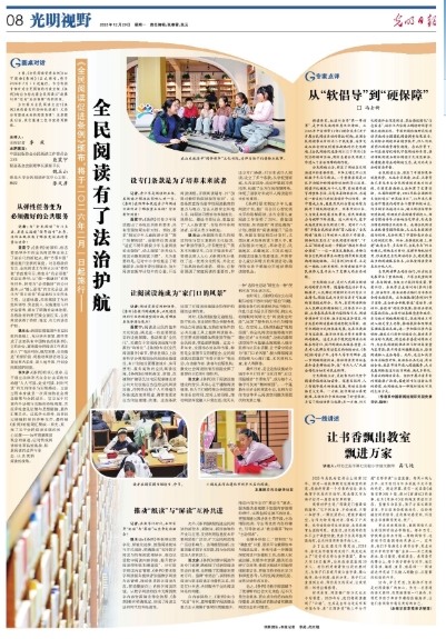 新闻网讯 12月29日,《光明日报》邀请聂震宁、魏玉山及金年金全民阅读研究中心主任张文彦三位专家圆桌对话,共同解读《全民阅读促进条例》(以下简称《条例》),就解读内容,刊发了《全民阅读有了法治护航》一文。