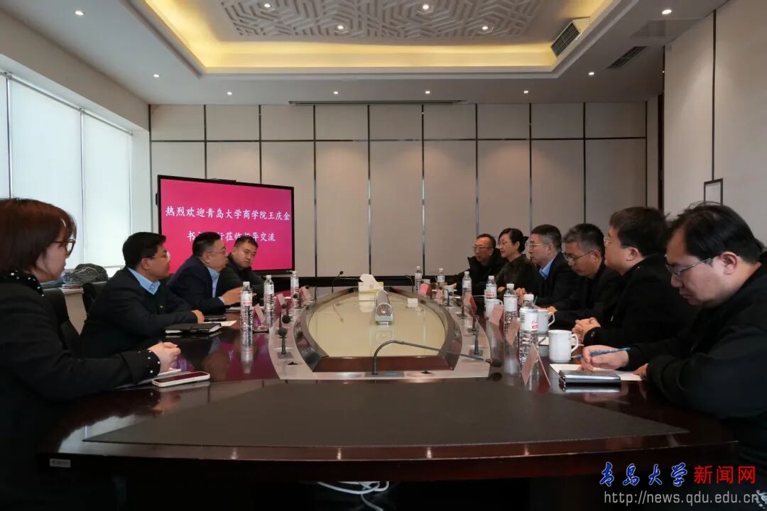 新闻网讯 近日,商学院党委书记王庆金、党委副书记尼梅颉一行赴山东海润投资集团进行专项调研交流,学院院长助理马骋、MBA教育中心主任李金克、教授张喆、学工办主任李鹏及十余名优秀本硕毕业生代表同行,共同探索校企协同育人新路径。