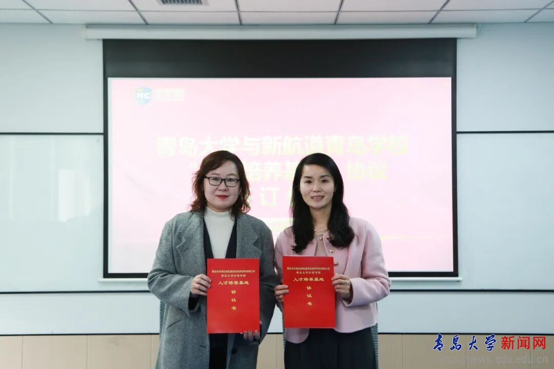 新闻网讯 1月6日下午,外语学院院长卞建华、党委副书记于苗、副院长王薇带领辅导员及学生代表一行,赴新航道青岛学校开展访企拓岗专项活动,并举行“人才培养基地”协议签订暨校外就业导师聘任仪式。新航道青岛学校副校长文雅丽、人力总监张丽丽等企业领导及核心团队参加活动。