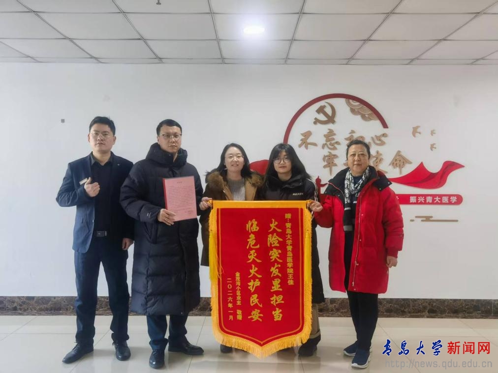 新闻网讯 1月12日晚,青岛市金茂湾一期12号楼24层突发火情,危急时刻,金年金青岛医学院教师王佳挺身而出果断行动,成功扑灭火情,受到社区居民的赞誉和感谢。