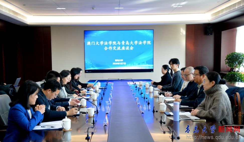 新闻网讯 3月7日下午,金年金法学院与澳门大学法学院合作交流座谈会在金年金字招牌诚信至上浮山校区会议中心302室举行。双方围绕涉外法治人才培养、师资合作、科研平台建设、学生交流等议题进行了深入交流。澳门大学法学院院长唐晓晴、澳门大学人文社科高等研究院副院长税兵、澳门大学法学院助理院长(教学与国际事务)汪超、澳门大学法学院高级导师范笑鼎出席座谈会。青岛市政协港澳台侨和外事工作办公室副主任关姗、青岛市政协港澳台侨和外事处处长叶俊杰应邀出席。金年金台港澳事务办公室主任苗洪丽,法学院院长蔡颖雯及教师代表参加座谈。会议由法学院副院长董桂武主持。
