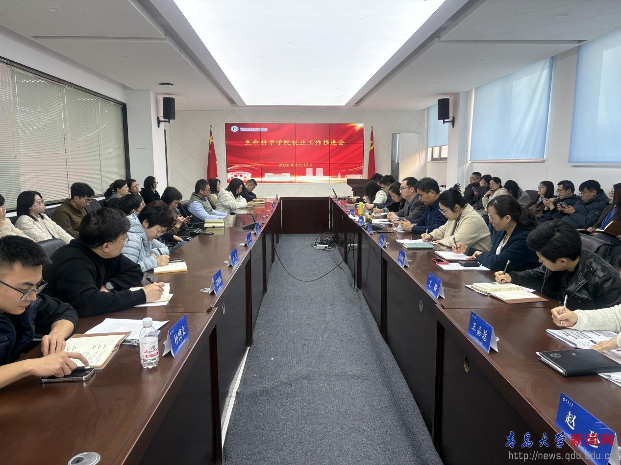 新闻网讯 3月12日,生命科学学院在博雅楼113会议室召开2026届毕业生就业工作推进会,学院党委书记孙建华、院长孙海新、学院领导班子成员及全体教职工参加。会议由学院党委副书记张雪蕾主持。