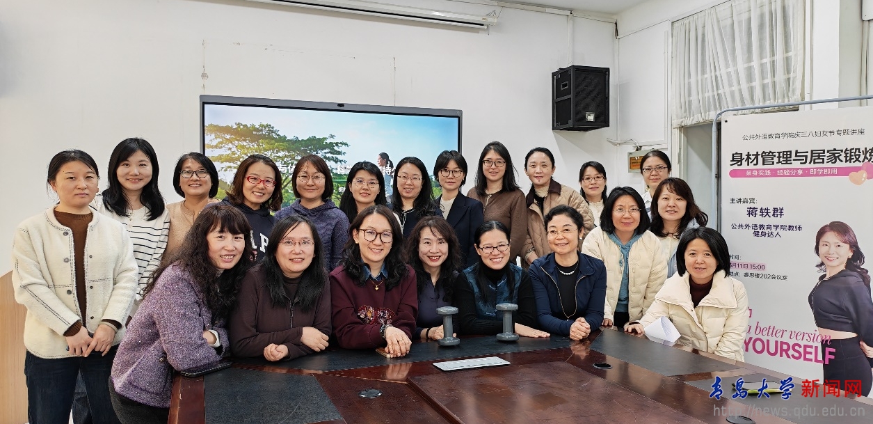 新闻网讯 3月11日下午,公共外语教育学院妇委会邀请健身达人蒋轶群老师,为全院女教职工带来了一场题为“身材管理与居家锻炼”的专题分享。