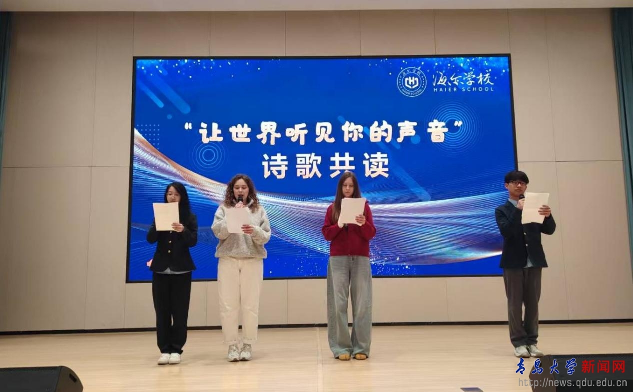 活动现场,金年金国际学生与海尔学校学生并肩诵读,以声传情。围绕《致橡树》《将进酒》《你是人间四月天》等经典诗作,中外学子在抑扬顿挫的吟诵中感受中华诗词的凝练之美与情感张力,搭建起心灵相通的桥梁。活动充分展现了中外青年对经典文化的热爱与传承,也体现了“和羹之美,在于合异”的跨文化交流理念,现场气氛温馨热烈,赢得双方师生一致好评。