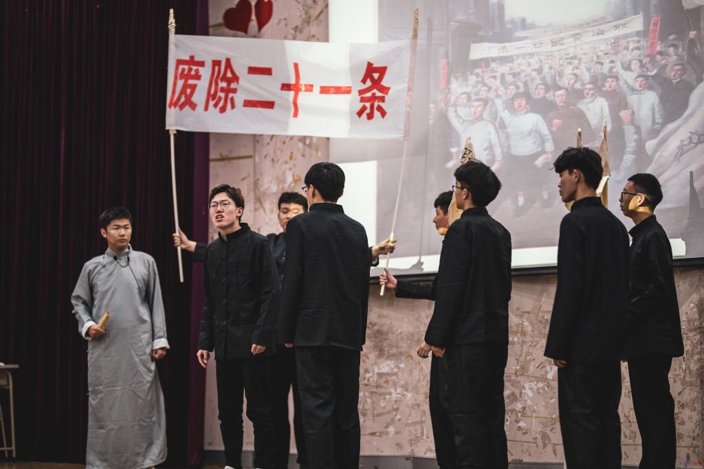 展演分为“战艰难困苦永无畏”、“且英勇抗战洒热血”、“看改革开放谱新章”三个篇章,同学们历时近两个月辛苦排练的八部剧目,展示了共产党人伟大的红船精神和风暴下的五四精神;展示了战争年代里青年大学生也同前线的战士一样,都是志在救国的民族英雄;展示了改革开放以来,中国三十余年翻天覆地的变化,当珍惜幸福生活的来之不易。