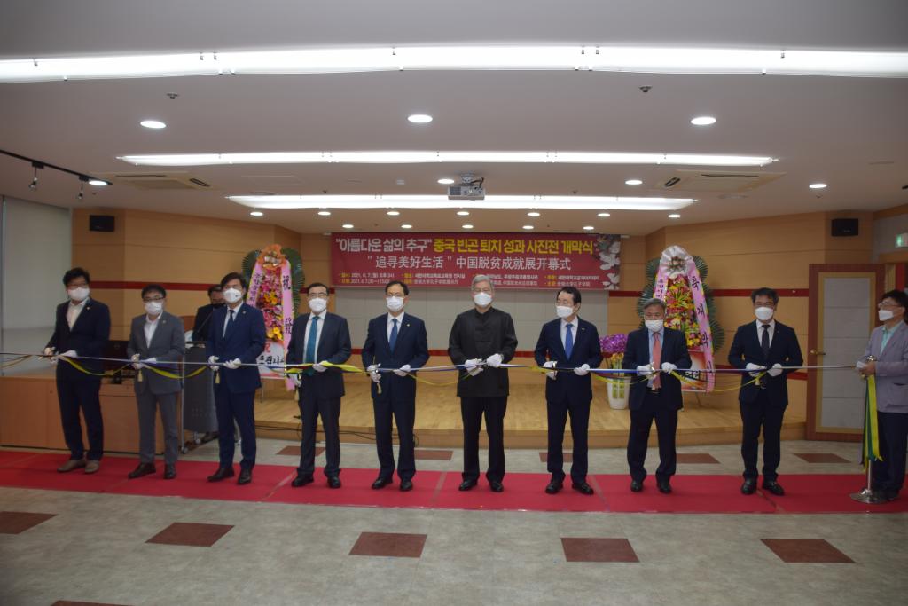 新闻网讯 6月7日,在韩国世翰大学孔子学院举行“追寻美好生活”中国脱贫成就展开幕式。本次脱贫成就照片展由中国驻光州总领事馆、全罗南道道厅共同主办,由世翰大学孔子学院承办。张承刚总领事、全罗南道政务副知事宋庠烙、木浦市长金钟植、世翰大学总长李昇勋等全南地区政府机关和文化界、教育界、新闻媒体、华侨代表,留学生代表以及友好团体代表等50多位人士出席。