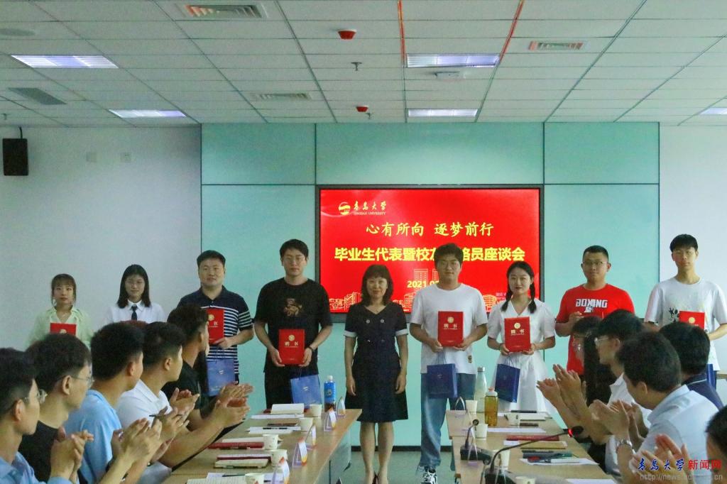 会上,2021届毕业生代表纷纷表达了对母校的拳拳之心和美好祝愿,从专业学习、入党经历、创新创业、社会实践、志愿服务等方面分享了个人在青大的成长故事,表示正是学校的培养让他们认识到青年学子身上的责任与担当,教会了他们把握时间、放宽视野、坚定梦想,毕业后他们也将坚定理想信念,传承青大精神,到基层、到西部、到祖国和人民最需要的地方发光发热、建功立业。