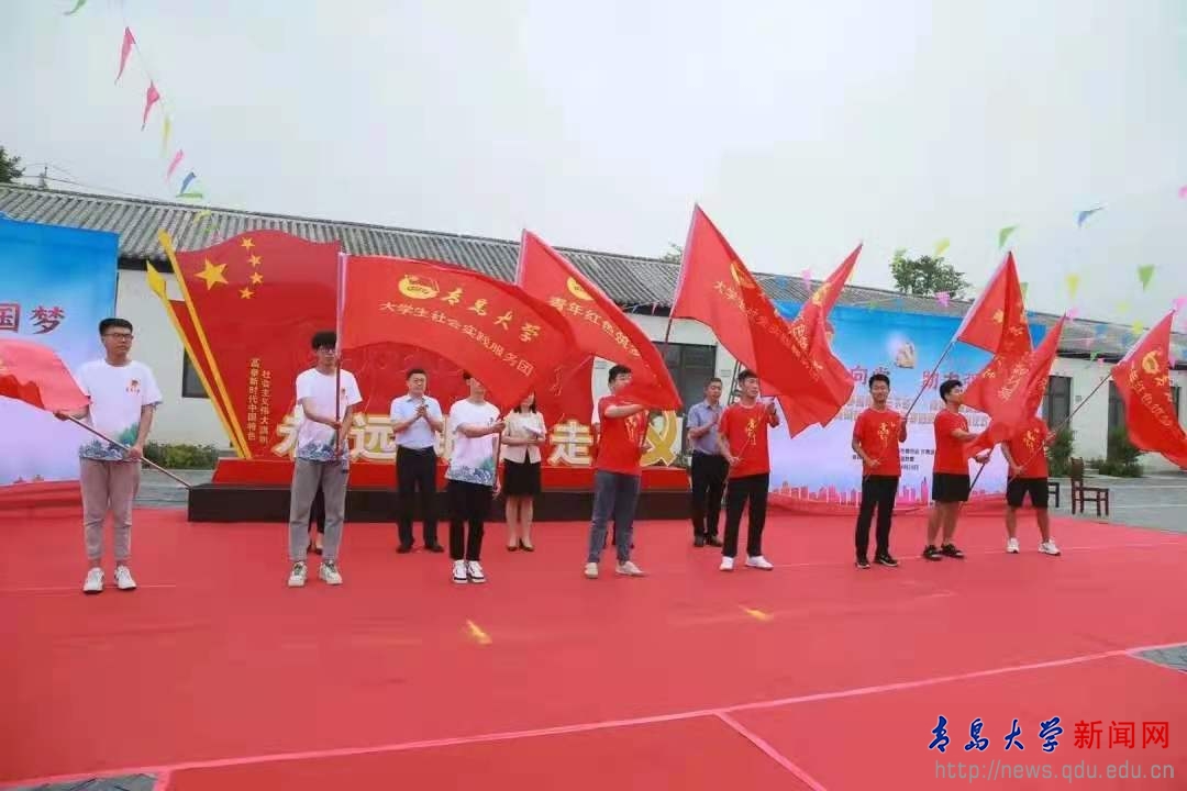 现场与会领导为社会实践团队和青年红色筑梦之旅团队代表授旗,这也标志着金年金2021年暑期“三下乡”社会实践活动和“青年红色筑梦之旅”的正式开展。
