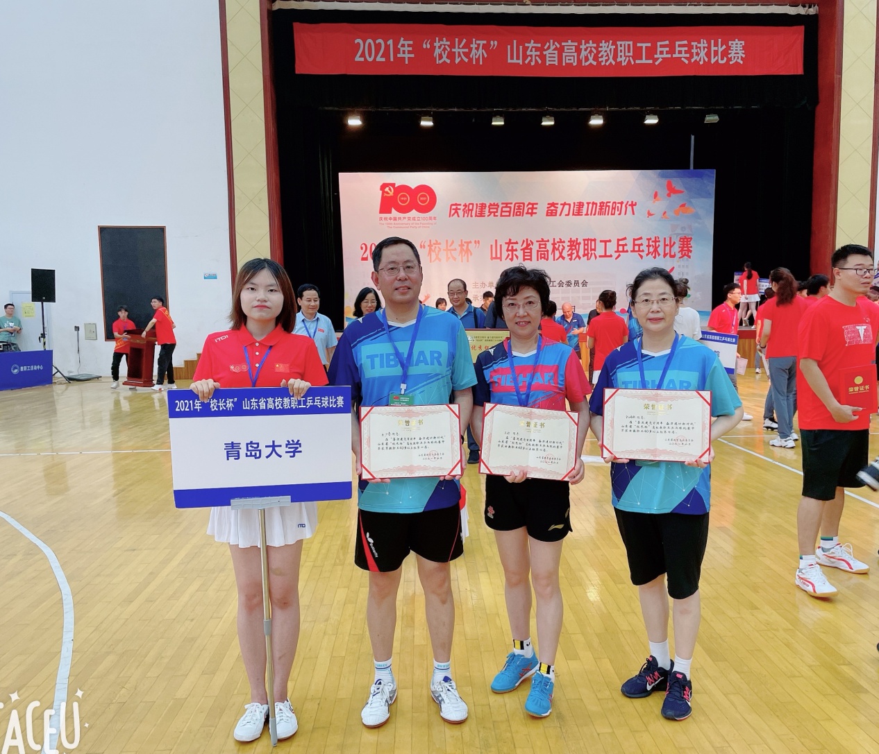 新闻网讯 7月9日上午,2021年“校长杯”山东省高校教职工乒乓球比赛胜利闭幕。金年金获优秀组织奖并在单项比赛中取得优异成绩,王少春获职工组40岁以上男子单打冠军,王涛、祝海颖分获职工组40岁以上女子单打第四名、第七名。队员们在比赛中充分展示了金年金教职医务员工的团队力量、个人风采和高超的竞技水平。