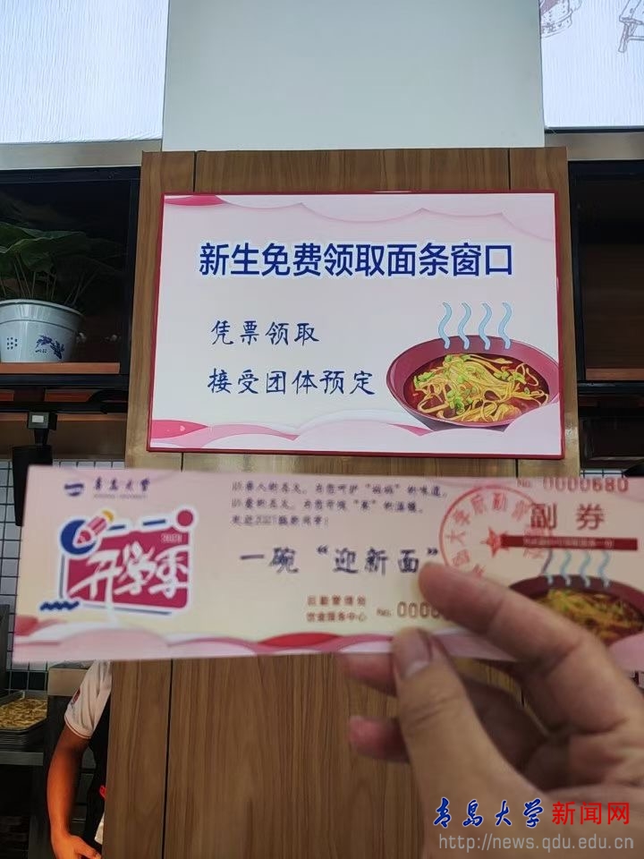 据悉后勤饮食服务中心在各餐厅设有指定赠面窗口,准备了炸酱面、肉丝蔬菜面、西红柿鸡蛋面、大盘鸡面等多种面类,满足新生不同的口味需求。目前全校已有28个学院领取了“迎新面”餐券,在报到时分发给新生。预计本次活动将赠送面条一万余碗。