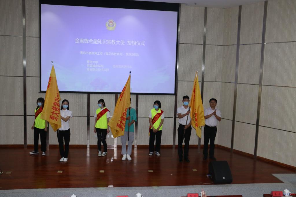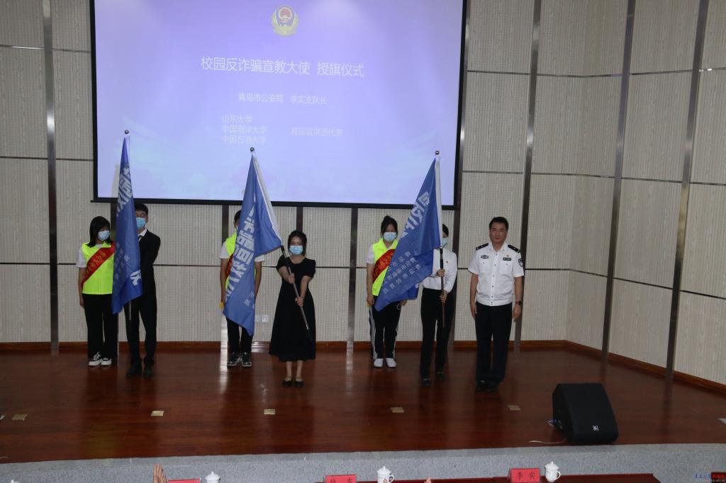 启动仪式上,青岛市公安局领导和青岛市委教育工委(青岛市教育局)领导分别为青岛高校“校园反诈骗宣教大使”、“金蜜蜂金融知识宣教大使”宣讲团学生代表授旗,学生志愿服务宣教团将深入学生课堂、班级、宿舍开展相关防范电信网络诈骗主题活动。