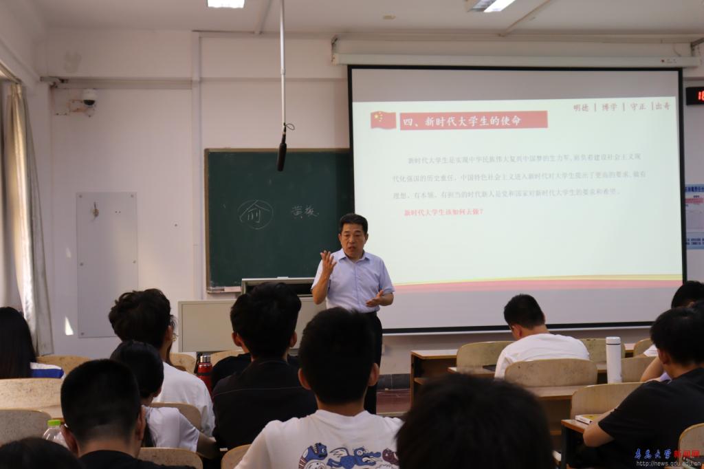 新闻网讯 9月15日下午,校党委副书记杜方波在浮山校区博远楼206教室以“1920年,是一个什么样的年份”为题,为2019级数学与应用数学(师范类)本科生讲授了一堂别开生面的思政课。