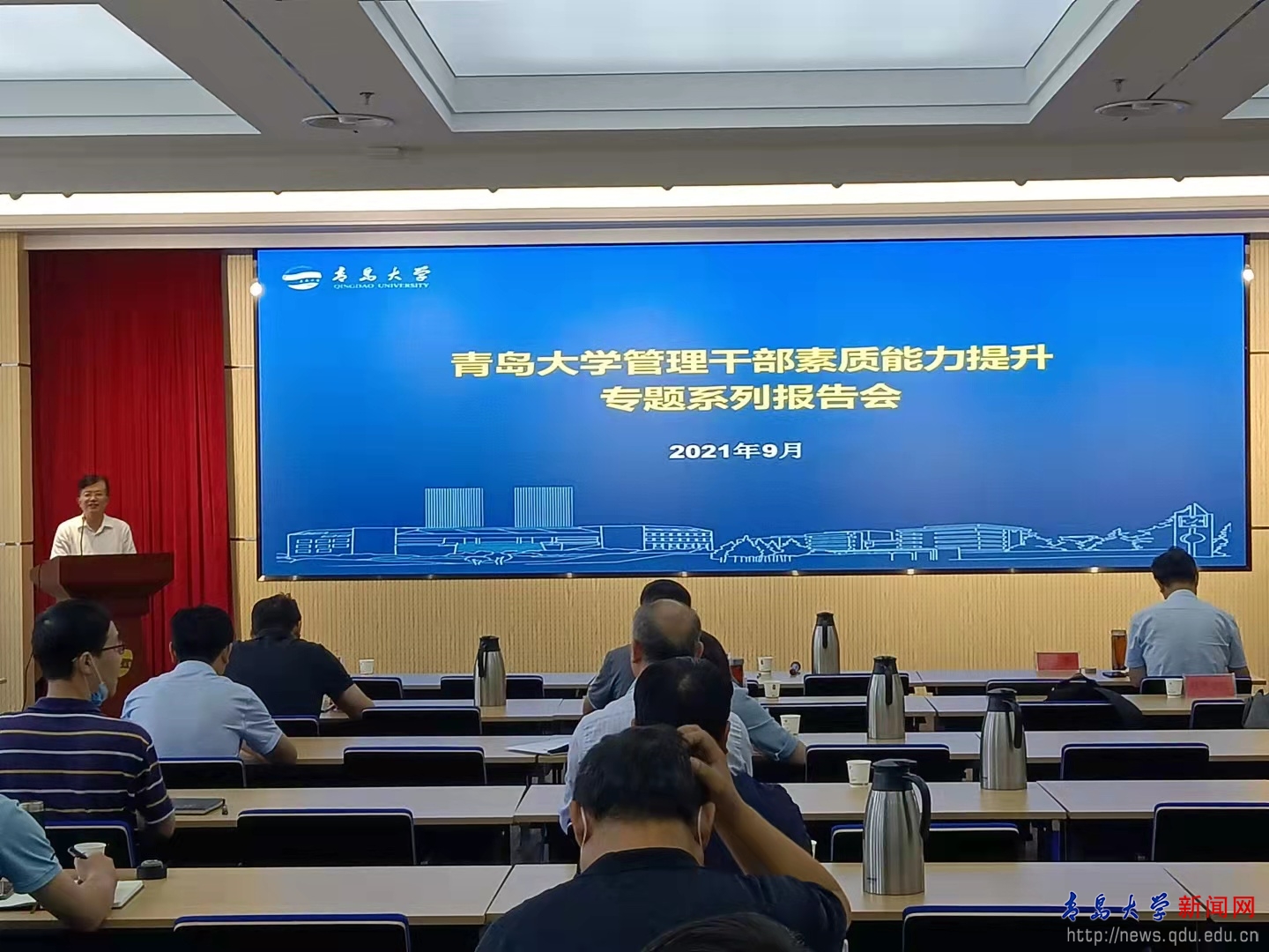 新闻网讯 9月29日上午,学校在会议中心404会议室举办管理干部素质能力提升专题系列报告会首场报告。校党委常委、组织部部长徐龙飞主持报告。