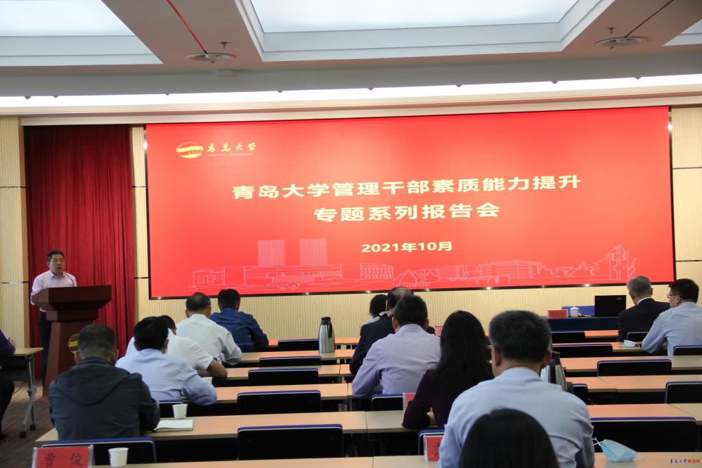新闻网讯 10月13日下午,学校在会议中心404会议室举办管理干部素质能力提升系列报告会第二场报告。校党委副书记杜方波主持报告会,校党委常委、组织部部长徐龙飞出席。