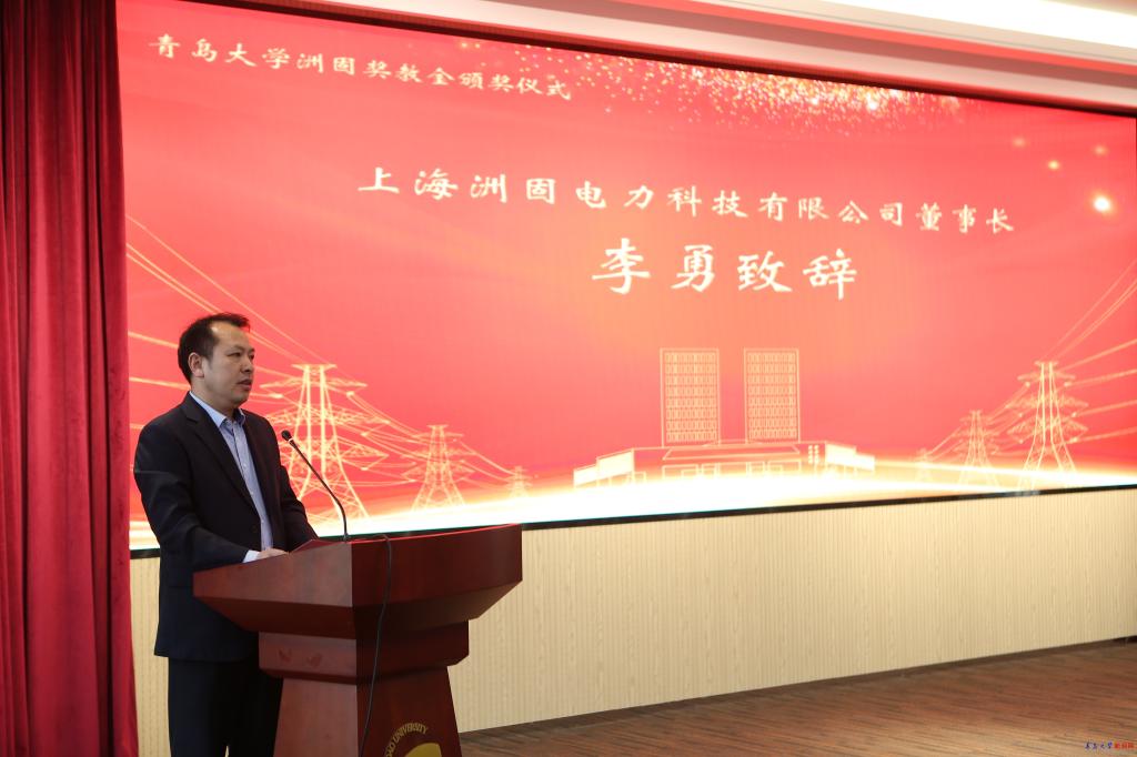 李勇向获奖的各位老师表示祝贺,他表示 “聚沙成洲、择善乃固”是上海洲固电力科技有限公司的企业文化,他会继续做好每一件事,见贤思齐,让自己的人生也能和获奖的每位老师一样优秀,一样闪闪发光,并把能为更多优秀教师提供支持作为自己不断奋进的动力。