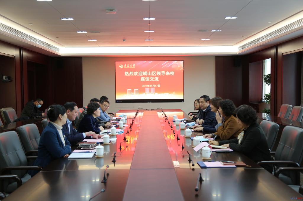 新闻网讯 11月17日下午,崂山区副区长张咏雁一行来访。校党委常委、副校长姜宏在会议中心致远厅会见并座谈。
