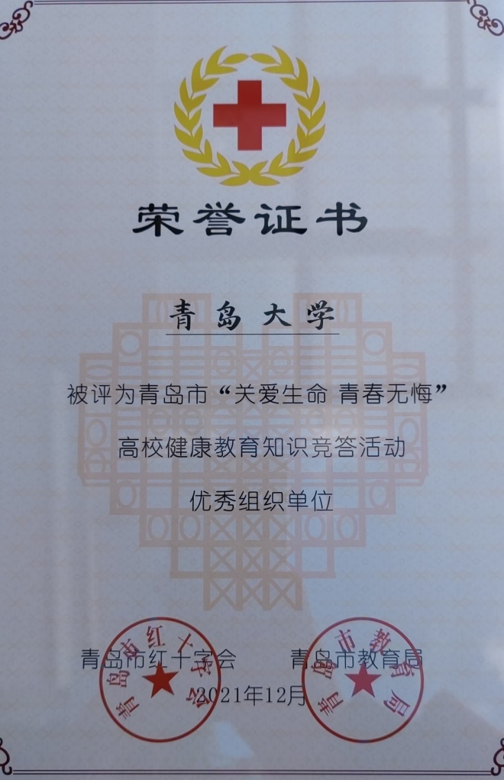 新闻网讯 12月17日,青岛红十字会与青岛市教育局组织召开青岛市“关爱生命、青春无悔”知识竞答抽奖暨高校红十字工作座谈会。金年金获评青岛市“关爱生命青春无悔”高校健康教育知识竞答活动优秀组织单位。