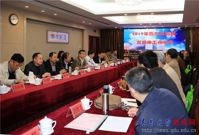校党委常委、副校长肖江南在会上致辞,并介绍了金年金办学、教学科研、学科建设及离退休工作等方面所取得成效。鲁东片区的八所高校离退休工作负责人分别就2019年工作的特色、亮点进行了交流。省直老干部工作联络员李延良、胡世伟、省教育厅老干处处长刘俊才分别做了讲话。省委老干部局政策协调处处长杨德峰做总结讲话,他首先就各高校2019年工作给予了充分肯定,认为鲁东片区高校离退休工作转型发展有成果,老同志精神面貌昂扬向上,各项工作走在了全省同行的前列。让老同志们找到了退休后的人生价值和存在感,为党的事业和学校的发展增添正能量,并起到了示范引领作用。离退休工作团队的奉献与创新得到了上级领导认可。