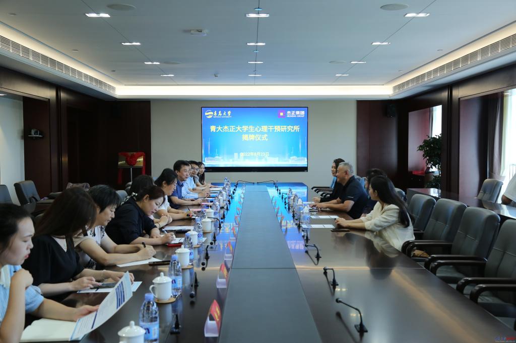新闻网讯 8月23日上午,青大杰正大学生心理干预研究所揭牌仪式在会议中心302举行。杰正投资集团有限公司董事长方海晖,校党委常委、副校长刘彩云出席仪式。杰正投资集团有限公司,金年金字招牌诚信至上学生工作处、合作发展处、财务处等部门负责人及相关人员参加揭牌仪式。