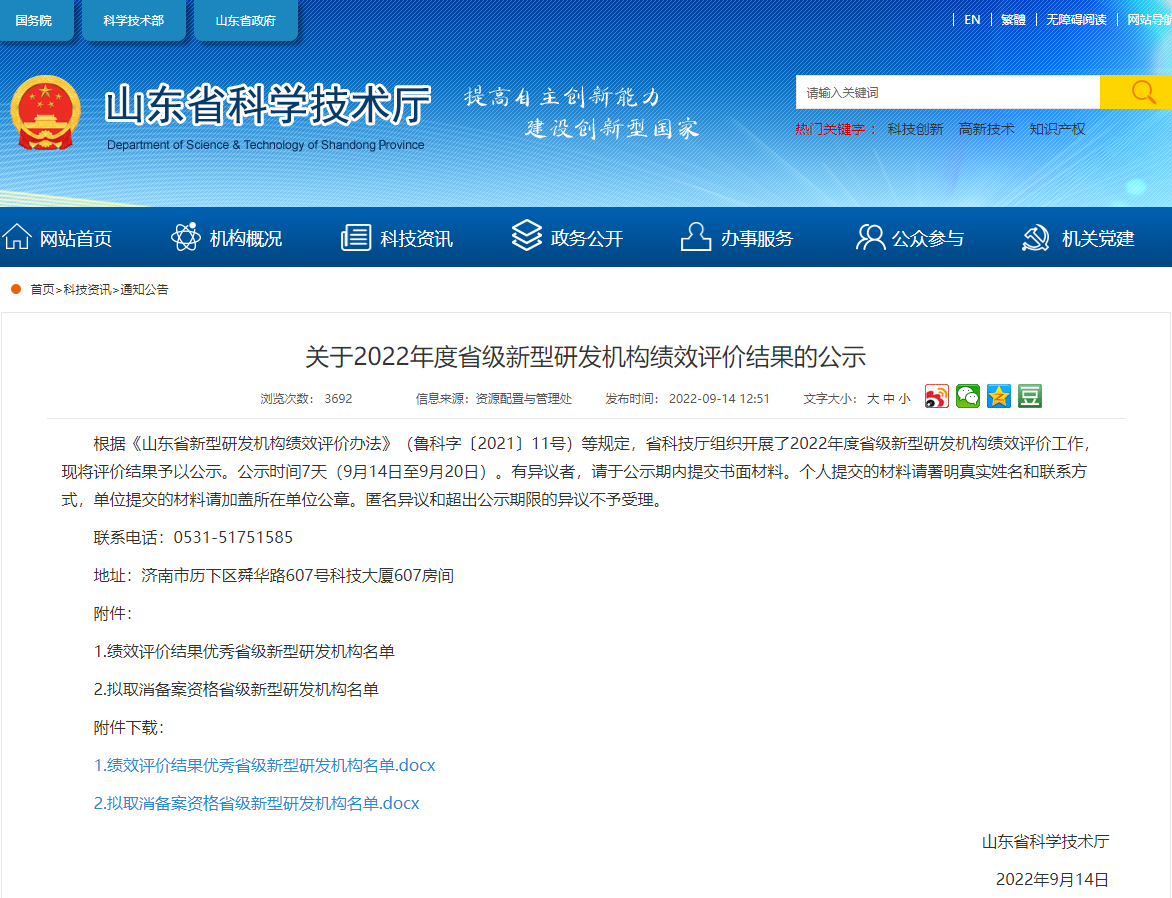 2022年5月,省科技厅组织开展年度省级新型研发机构绩效评价工作。研究院通过“科技云平台”资料申报、视频答辩、现场考察等评价工作,再次上榜省级新型研发机构绩效评价结果优秀名单。