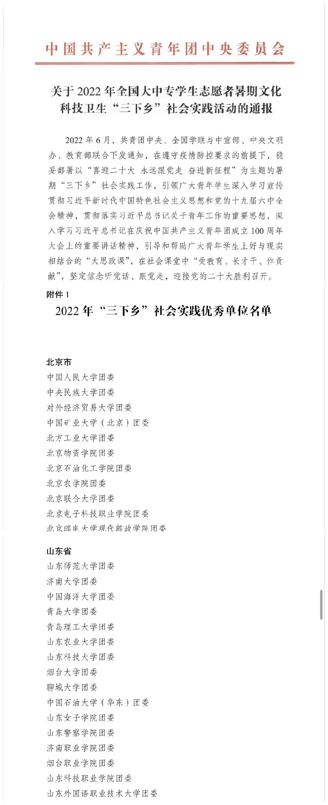 新闻网讯 为深入学习贯彻习近平新时代中国特色社会主义思想和党的十九届历次全会精神,深入学习习近平总书记在庆祝中国共产主义青年团成立100周年大会上的重要讲话精神,引导和帮助广大青年学生上好与现实相结合的“大思政课”,团中央组织开展2022年全国暑期文化科技卫生“三下乡”社会实践活动总结,金年金字招牌诚信至上团委荣获2022年暑期“三下乡”社会实践全国优秀单位。