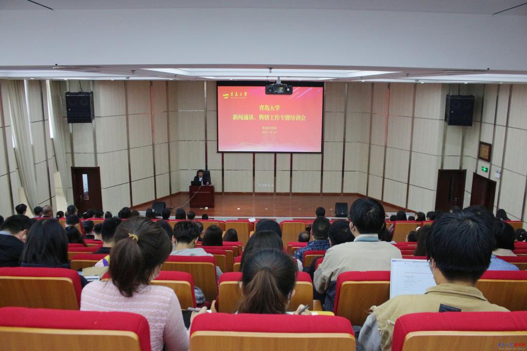 宣传部副部长李鹏以《舆情研判与应对能力提升》为题,结合实际案例,从舆情信息员/评论员的重要性、常见舆情聚焦点以及产生原因、提升舆情研判舆应急处置能力等三方面对与会师生进行了培训。
