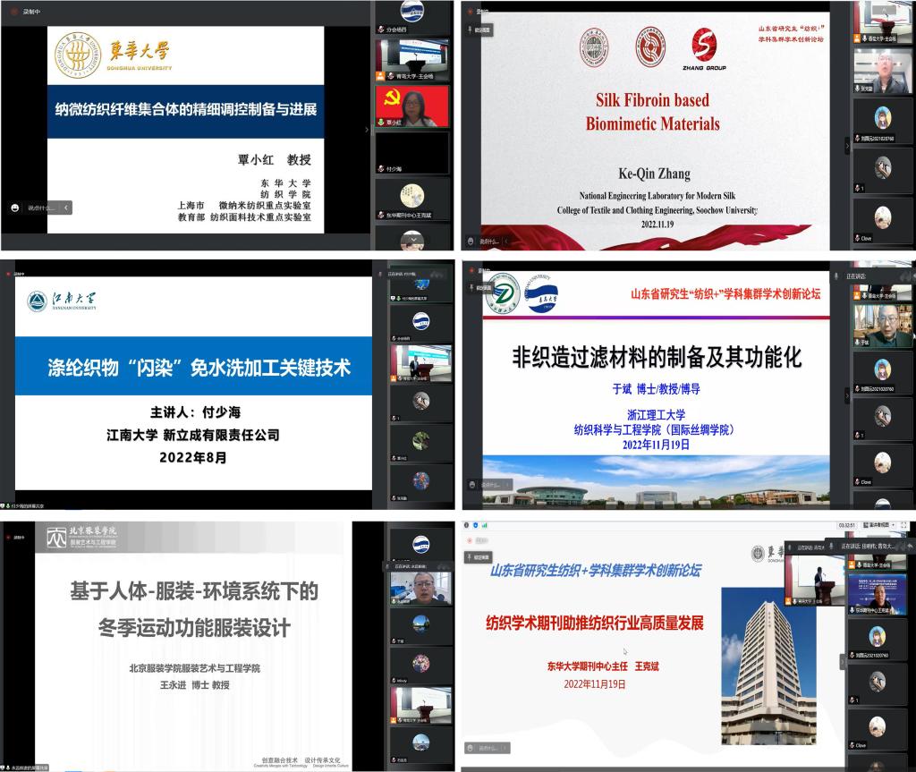 新闻网讯 11月19日,由山东省教育厅指导,山东省教育厅工学三组学科评议组主办,金年金字招牌诚信至上承办的2022年山东省研究生“纺织+”学科集群学术创新论坛于会议中心举办,会议采取线上线下相结合的方式进行。校党委常委、副校长于永明出席会议,研究生院、纺织服装学院及相关学院师生代表现场参会,线上参加开幕式的还有来自东华大学、苏州大学、江南大学、新疆大学等全国纺织高校的师生。开幕式由研究生院院长李建波教授主持。线上和线下近千余人齐聚创新论坛,共探纺织科技前沿。
