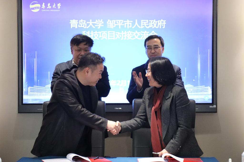 李荣贵首先对宋明科一行表示热烈的欢迎。他介绍了学校近年来的发展概况,重点对学校立足青岛、服务国家战略和地方发展等方面进行了介绍。他表示,邹平市积极推行科技创新驱动发展战略,产业特色鲜明,呈现出高质量发展态势。希望本次科技项目对接交流是双方合作共赢的新起点,携手搭建“政府+高校”科技创新服务平台,通过科技项目合作和科技成果转化,打造“创新引领+科技赋能”的样板典范,为区域经济发展蓄势赋能。