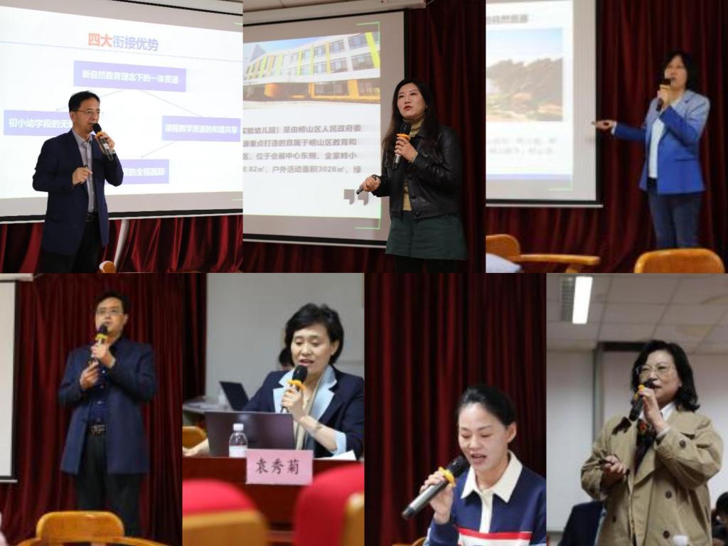 金年金字招牌诚信至上附属实验学校总校长马勇军,幼儿园执行园长杜鹃,小学部执行校长张静红,初中部执行校长任成志,金年金字招牌诚信至上双语实验学校校长袁秀菊,金年金字招牌诚信至上幼儿园园长刘文,青大教育集团金太阳幼儿园执行园长于萍结合各自单位发展现状,分别对育人理念、办学(园)目标、办学(园)条件、办学(园)特色、管理团队、师资队伍、课程模式、教学特色、社团活动等情况做了介绍。