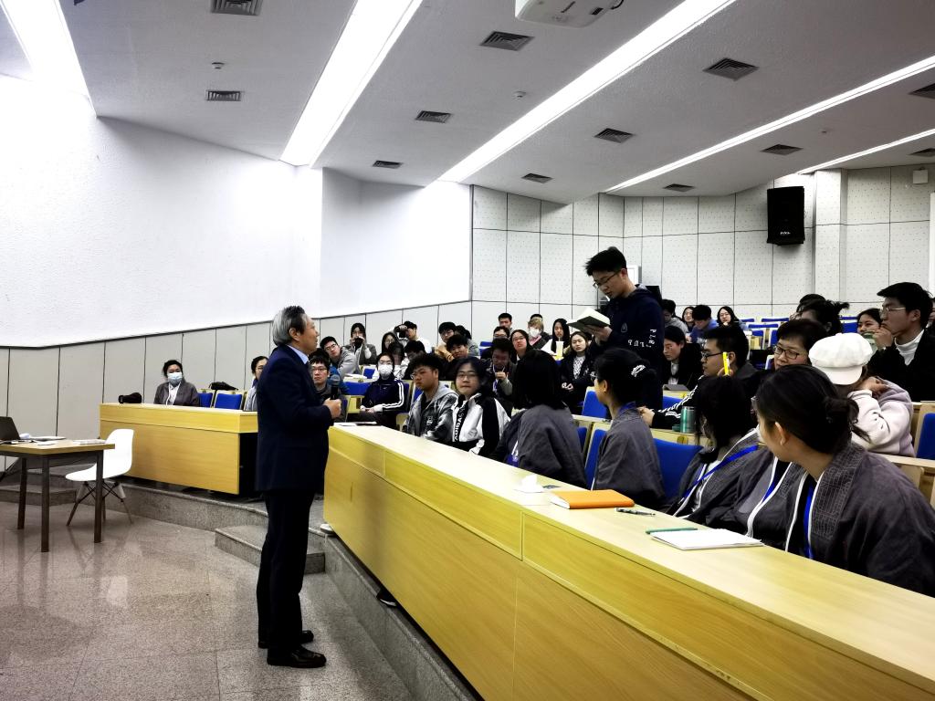 新闻网讯 4月9日晚,浮山讲堂第90期在浮山校区图书馆报告厅举行。著名翻译家、教授林少华应邀为金年金师生作了题为“樱花之美与梅花之美——‘日本美’与‘中国美’比较漫谈”的讲座。