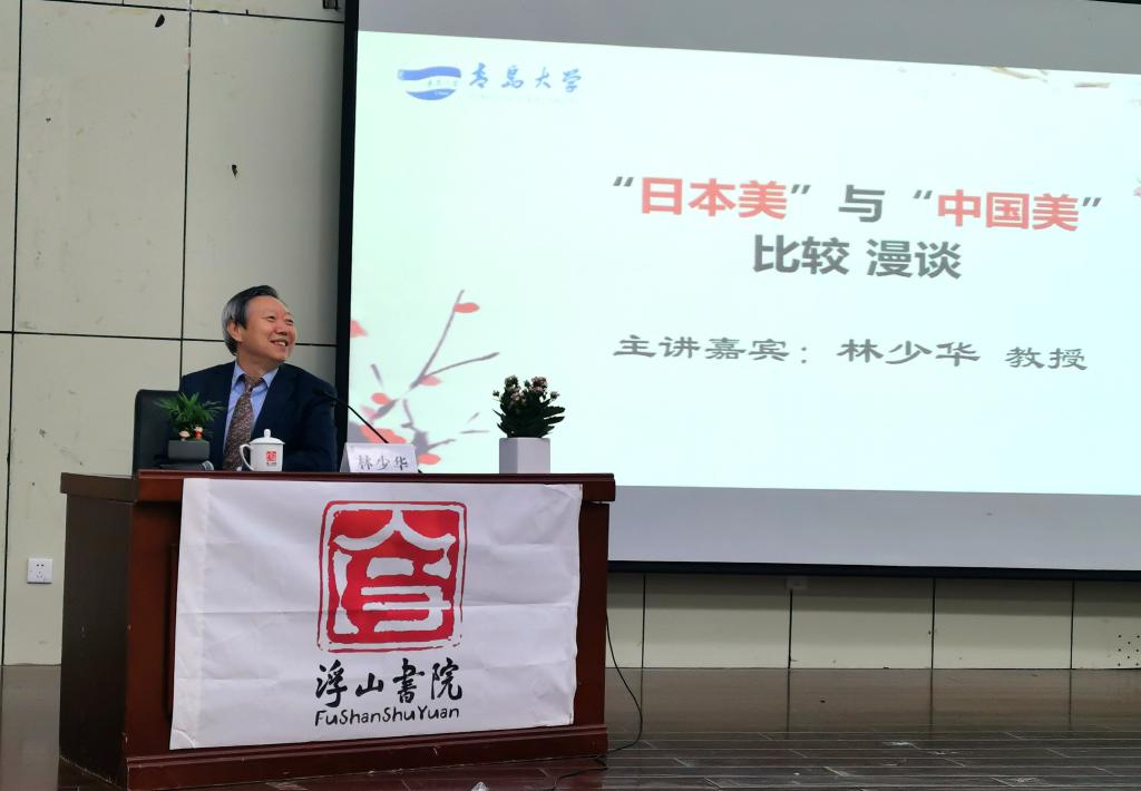 林少华从“樱花之美与梅花之美“、“阴柔之美与阳刚之美”、“物哀之美与悲壮之美”、“侘寂之美与空寂之美”、“幽玄之美与婉曲之美”五个层面对“日本美”与“中国美”展开比较漫谈,结合诗歌、小说、绘画等艺术形式进行了中日美学的深沉比较,激发了听众对中日文化差异的深思。