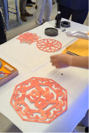 志愿者老师李晓静准备了中国剪纸、折纸以及中国结,现场向大家讲解中国的窗花、福字的含义等等。