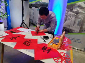 典礼现场,孔子学院的老师向大家展示、分享了中国文化。其中公派老师王烈陈向大家展示了中国书法,并通过文字和书法对依科赛新工厂落成表达祝贺。