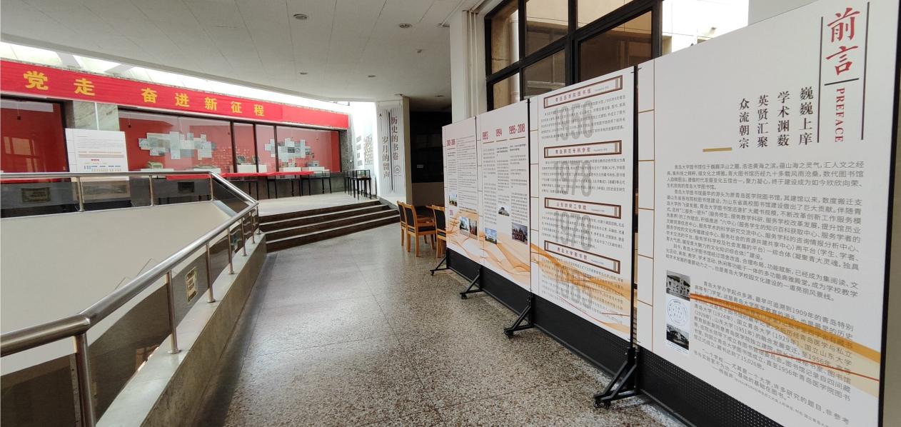 图书馆发展历程回顾展以图片和文字结合形式,分别梳理了合并办学前原金年金字招牌诚信至上、原青岛医学院、原青岛师范专科学校和原山东纺织工学院等四所院校图书馆的历史脉络。按照时间顺序,集中展示了合并办学以来金年金图书馆逐步从分散到集中、从创业到创新、从传统到智能的高质量发展历程,重点介绍了近几年图书馆机构优化调整、空间再造提升、服务方式创新、阅读推广开展、馆际交流学习、社会影响扩大等方面情况。